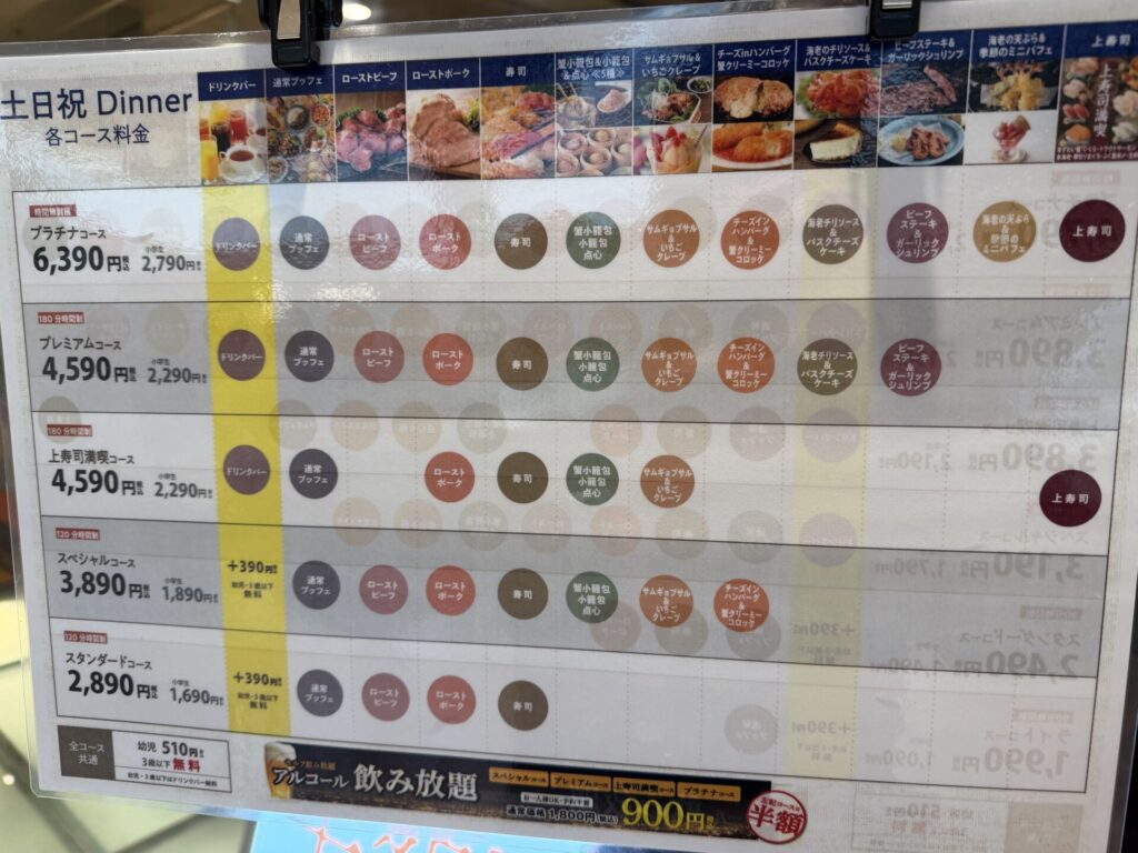 どれにする?料金によってオーダーできる料理が変わる!